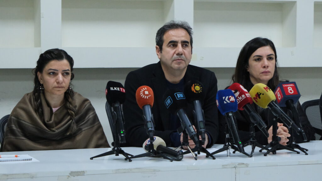 Komîteya Amadekar a Mîtînga “Hêvî û Azadiyê” têkildarî plansaziya mitîngê civîna çapemeniyê li dar xist û diyar kir ku wan ji ber şert û mercên hewayê û ji bo ewlehiya welatiyên ji dûr tên, mitîngê taloq kirine.