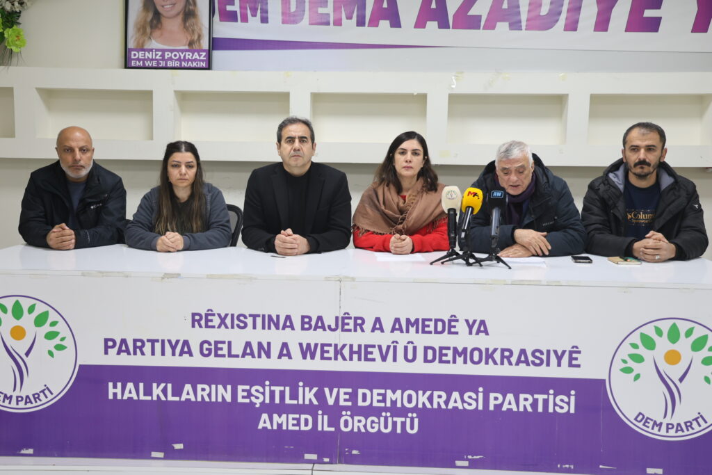 Ewilî Hevserokê DEM Partiyê ya Amedê Abbas Şahîn axivî û diyar kir ku di 27ê Sibatê de Rêberê Gelê Kurd Abdullah Ocalan bang kiribû û gotibû ez dikarim pêvajoyê ji şer û pevçûnê bînim ser zemîna hiqûqî û siyasî û wiha axivî: “Dive ev pêvajo li ser Meclisê û zemîna hiqûqî bimeşê. Wekî tê zanîn me diyar kiribû ku me dê ji bo azadiya rêberê Gelê Kurd Abdullah Ocalan mitîngekê li dar bixista. Lê ji bo rewşa hewayê ya ne guncav me mitîngê taloq kir.”
