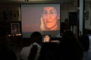 Bername bi rawestina rêzgirtinê destpêkir û jina sînevîzyona ji bo Nagîhan Akarsel hatî amadekirin temaşekirin. Piştre Seroka MKGê Roza Metîna, endamê Akademiya Jîneolojiyê Gulan Çagin Kalelî û aktîvîsta Tevgerên Jinên Azad(TJA) Emîne Çaynak axaftin kirin.