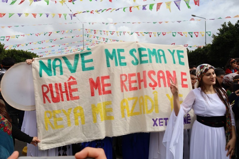 Pîrozbahî, bi rêzgirtinê dest pê kir û piştre jî hevserokên DEM Partiyê yên bajar axivîn û Newroz li gel pîroz kirin.