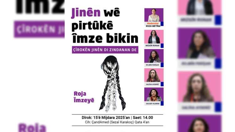 Di çalakiya îmzeyê de yek ji nivîskara pirtûkê Mizgîn Ronak û nivîskar û hevseroka PENa Kurd Rojbîn Perîşan, siyasetmedar Salîha Aydeniz û siyasetmedar Gulser Yildirim dê li Çand Amedê pirtûkê îmze dikin. Moderatoriya vê bernameyê jî Roza Metîna dike.