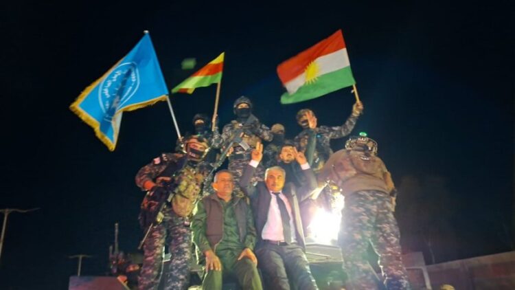 Gel di pêşwazîkirinê de dirûşmên “Bijî berxwedana Rojava” berz kirin.