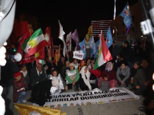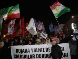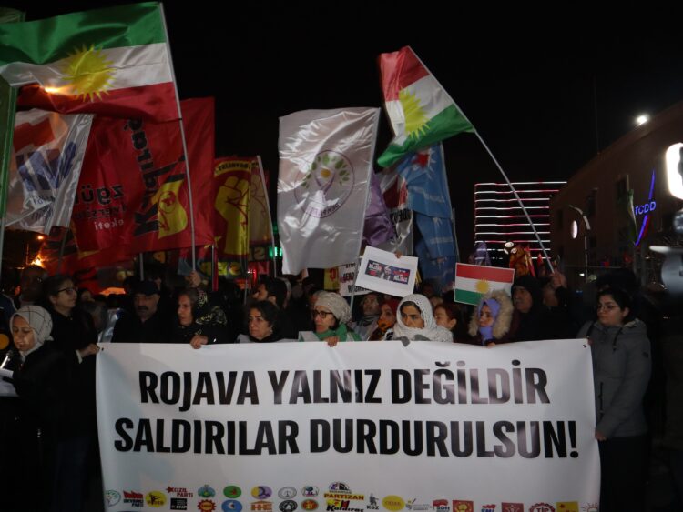 Partiya Demokrasî û Wekheviya Gelan (DEM Parti), Partiya Herêmên Demokratîk (DBP), Tevgera Jinên Azad (TJA) û gelek sazî û dezgeh li ber Gara Alsancakê ya Îzmîrê derbarê êrîşên li ser Rojava û Sûriyeyê daxuyanî dan. Di daxuyaniyê de pankarta ‘Rojava ne bi tene ye, bila êriş bêne sekinandin’, dovîzên ‘Em piştgirê Rojava ne’ hatin hilgirtin û dirûşmeyên ‘Bijî berxwedana Rojava’, ‘Bijî Serok Apo’, ‘Kurdistan wê ji faşîstan re bibe goristan‘ hatin berzkirin.