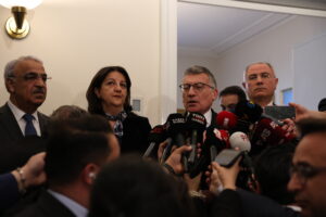 Hevdîtina Heyeta DEM Partiyê ya Îmraliyê di çerçoveya pêvajoya Aştî û Civaka Demokratîk de serdanên xwe yên li gel partiyên siyasî didomîne. Endamên Heyetê parlamenter Pervîn Buldan, Mîthat Sancar û endamê Buroya Hiqûqê ya Sedsalê Faîk Ozgur Erol li Meclîsê serdana heyeta AKPê kir. Heyeta Îmraliyê ji aliyê Serokê Koma AKPê Abdullah Guler, Berdevkê AKPê Omer Çelîk, Serokwekîlê Serokê Giştî yê AKPê Efkan Ala ve hate pêşwazîkirin.