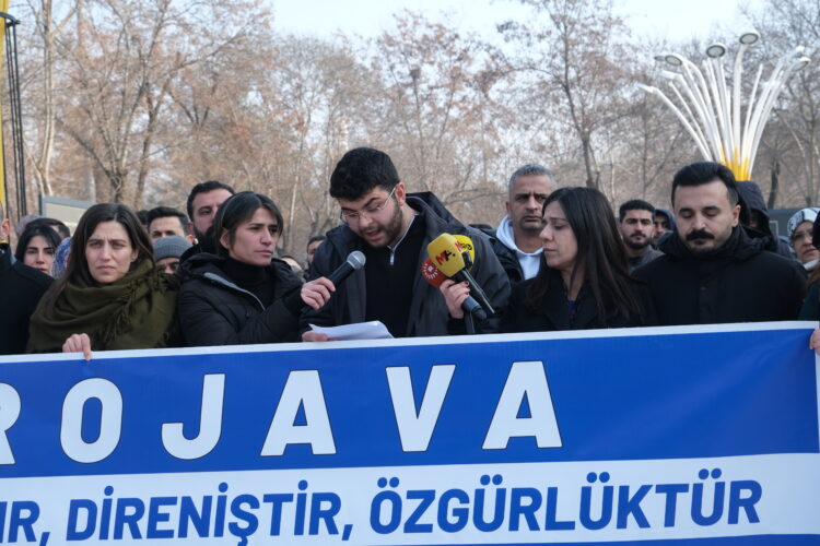 Êlih – Bi pêşentgiya Platforma Saziyên Demokratîk ên Êlihê têkildarî êrîşên li ser taxên Helebê yên Şêx Mexsûd û Eşrefiyê yên Bakur û Rijhilatê Suriyeyê û xwepêşandanên li Rojhilatê Kurdistanê daxuyanî dan û got: “Eşkere ye ku têkiliya Tirkiyeyê bi HTŞ û serokê wê re heye û di van êrişan de rolek lîstiye.”