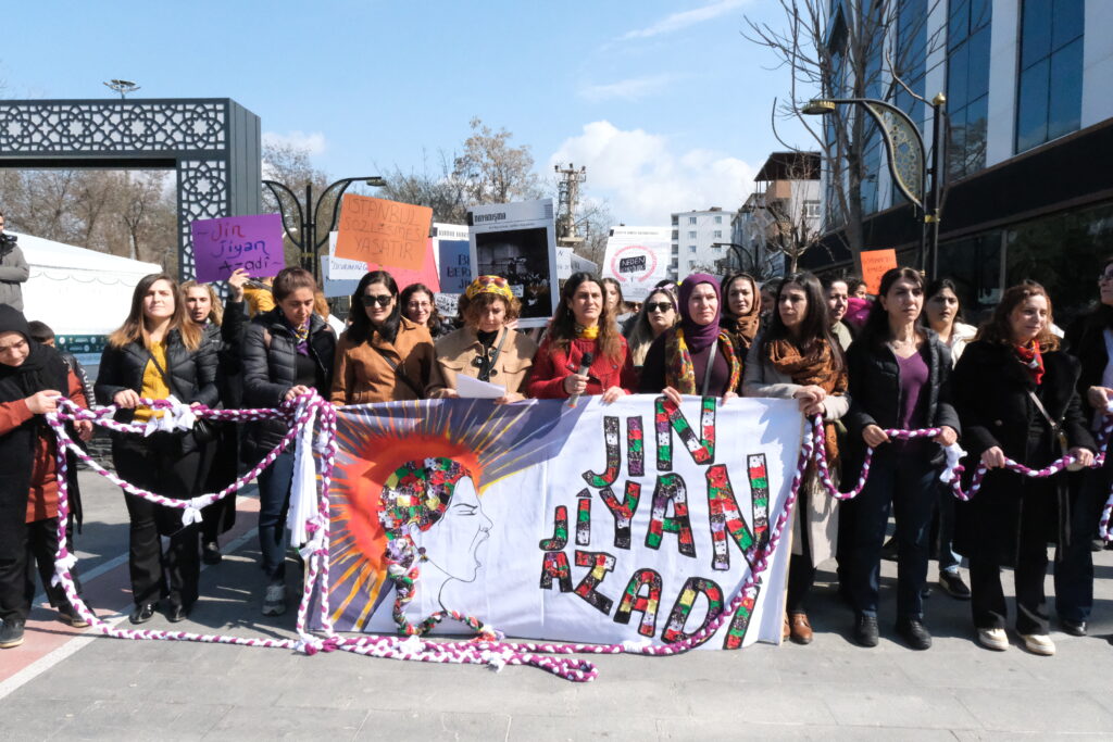 Platforma Ked û Demokrasiyê ya Jinan a Êlihê bi boneya pîrozbahiyên 8ê Adarê Roja Jinan a Cîhanê ji Xaçereyê Dortyolê heya parka Yilmaz Guney meşiyan li dar xist û piştî meşê daxuyanî da. Di çalakiyê de Hevseroka DEM Partiyê ya Êlihê Semra Guneş, Hevseroka DBPê ya Êlihê Mehdiye Demîr, gelek endam û rêveberên partiyên siyasî, aktîvîstên Tevgera Jinên Azad (TJA) wan û gelek kes beşdarî meş û daxuyaniyê bûn.