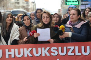 Li ser navê platformê endama TÎHVê Ayfer Şahîn Bîlîcî metna daxuyaniyê xwend. Ayfer Şahîn Bîlîcî ku behsa dahatuya bijîşkiya Ayşe Ugurluyê kir, peywirên wê yên di kom û komeleyên mafên mirovan de bi bîr xist. Ayfer Şahîn Bîlîcî diyar kir ku Ayşe Ugurlu di sala 2023an de di çalakiyeke Platforma Jinan a Enqereyê de metna daxuyaniyê xwendiye û ji ber vê metnê bi hinceta “rûmet û hurmeta meqamê Serokkomariyê dipelçixîne, rencîde dike û heqaretê dihewîne” derbarê wê de lêpirsîn hatiye destpêkirin. Ayfer Şahîn Bîlîcî anî ziman ku Ayşe Ugurlu di sala 2025an de ji karmendiyê hatiye dûrxistin û got: “Serokatiya Lijneya Teftîşê ya Wezareta Tenduristiyê di 7ê Nîsana 2025an de lêpirsîna dîsîplînê da destpêkirin û bi hinceta ‘tevgerên rûreş û fedîkar ên ku bi rewşa memurtiyê re neguncav’ daxwaza derxistina wê ya ji karmendiya dewletê kir.”