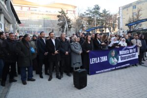 Daxuyanî bi dirûşmeya “Leyla Zana rûmeta me ye” bi dawî bû.