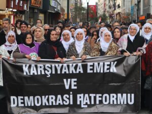 Platforma Ked û Demokrasiyê ya Karsiyakayê ya Îzmîrê li hemberî îskeleya Karşiyakayê daxuyanî da û êrişên li ser Rojava şermezar kir. Daxuyaniyê dirûşmeya ‘’Bijî berxwedana Rojava’’ hate berzkirin. Beriya daxuyaniyê parlamenterê DEM Partiyê ya Îzmîrê Îbrahim Akin axivî û got: “Êrişên li ser Rojava, ji birçîna û sermayê mirina insanan bi me dide nişan ku li Rojava rasterast sûcên dij-mirovî hene û li wir hiqûqa navneteweyî êdî ji holê hatiye rakirin.” Piştî axaftinê daxuyanî li ser navê platformê ji hêla Yaşar Seren ve hate xwendin.