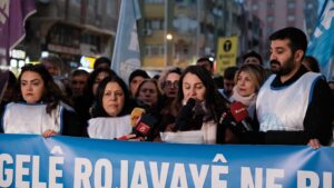 Dûygû Ozbay bang li rêxistinên kedê û pîşeyî, rêxistinên jinan, tevgerên ciwanan, parêzvanên mafên zarokan, saziyên mafên mirovan û rêxistinên civaka sivîl ên ku ji bo aştî û edaletê têdikoşin kir ku tevkariya xwe bi gelê Rojava re nîşan bidin û got, “Gelê Rojava wê teqez bi ser bikeve. Em dizanin ku cîhan nikare demek dirêj li hember berxwedanek ku rewatiya xwe ji gel digire bêdeng bimîne. Şer, înkar û tarîtiya cîhadiyan dê winda bikin; têkoşîna gelan a ji bo azadî, wekhevî û aştiyê dê bi ser bikeve.”