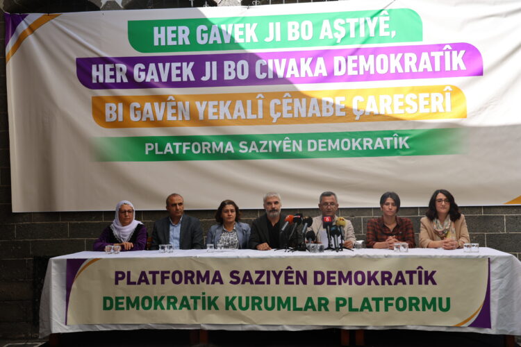 Platorma Saziyên Demokratîk li Qonala Îskender Paşa ya Sûra Amedê têkildarî vekişîna gêrîla ya di 26ê Cotmehê de civîna çapemeniyê pêk anî. Di civînê de li salonê pankarta mezin a li ser “Her gavek ji bo aştiyê, Her gavek ji bo civaka demokratîk, Bi gavên yekalî çênabe çareserî” vekir. Endamên Platformê û nûnerên saziyan di civînê de amade bûn.
