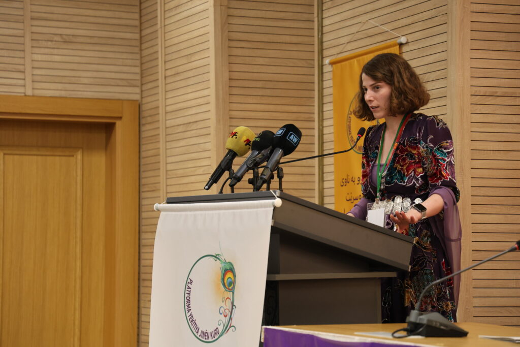 Mizgîn Irgatê destnîşan kir ku erdnîgariya Rojhilata Navîn, wekî ku di her serdemên dîrokê de hatiye dîtin, îro jî bûye navenda herî dijwar a şer, pevçûn û lîstikên siyasî yên hêzên serdest û ev tişt gotin: “Dema em li rûpelên dîrokê û rûdanên rojên me yên îro dinêrin, eşkere dibe ku gel û baweriyên qedîm ên vê axê her roj bi êrîşên nû û piralî yên hêzên desthilatdar û hegemonîk re rû bi rû dimînin. Ev hêzên ku tenê li ser bingeha berjewendiyên xwe yên aborî û polîtîk tevdigerin, hewl didin bi rêya zext, dagirkerî û her cure polîtîkayên qirkirinê nexşeya herêmê ji nû ve ava bikin û vîna gelên azadîxwaz bindest bikin. Lê bele her alî baş dizanê ku ev dizaynkirina nexşerêya Rojhilata Navîn beyî gelê Kurd pêk nayê. Kurdistana ku bi sedsalan e bêstatu hatiye hiştin û veguheriye qada kolonyalîzmê, di vê serdemê de careke din bûye hedefa sereke ya van hêzan û hemû nirxên neteweyî, mirovî û çandî yên gelê Kurd ketine bin xetereya talan û wêrankirinê.”