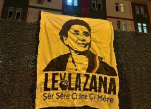 Li Amedê jî li ber avahiya Tesîsa Şehmus Ozer a Amedsporê pankarta bi wêneyê Leyla Zana ku li serê, “Şêr şêre çi jine çi mêre” nivîsandiye hate daliqandin