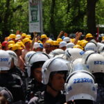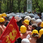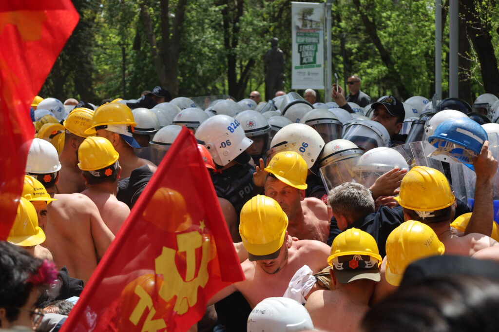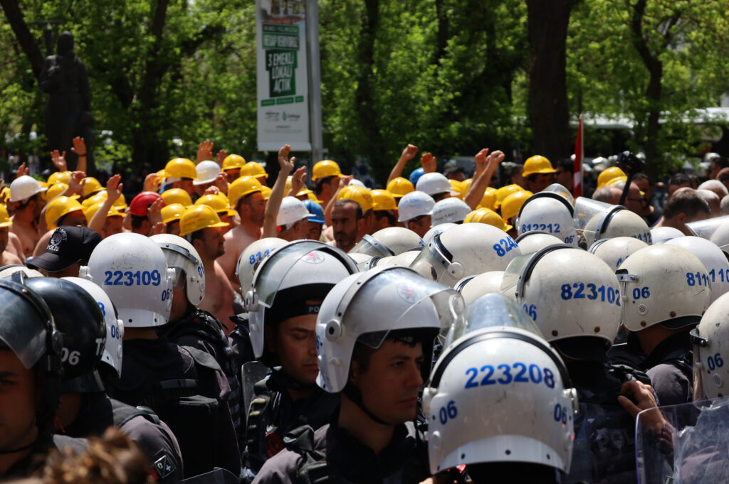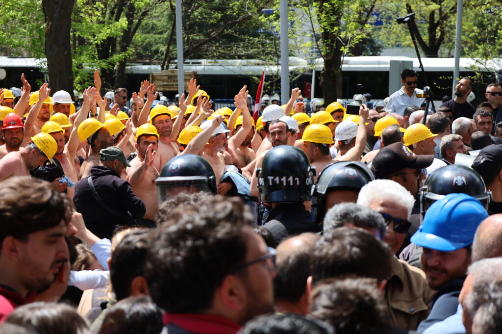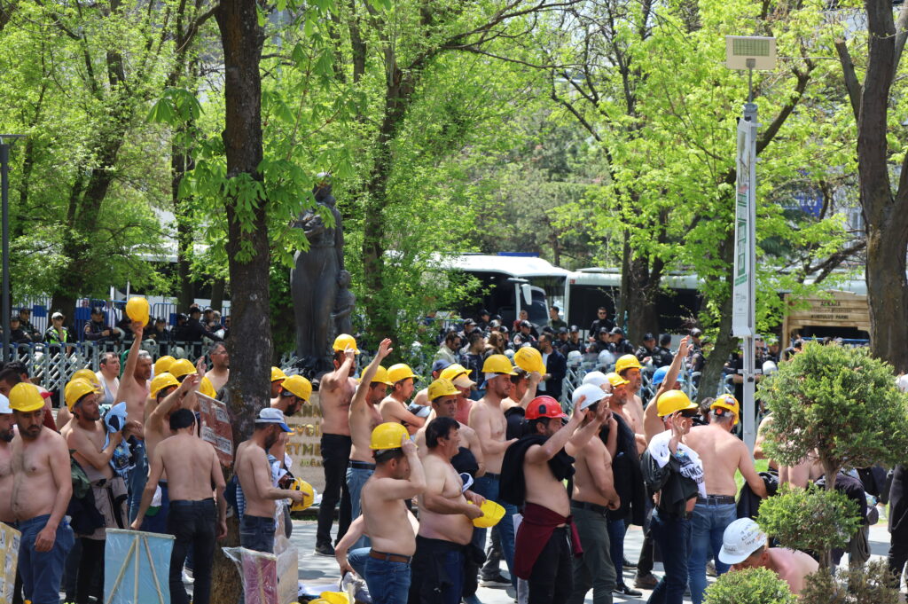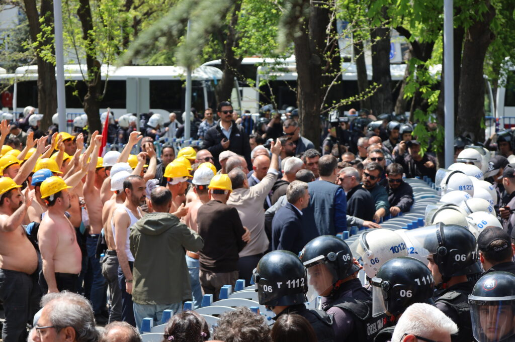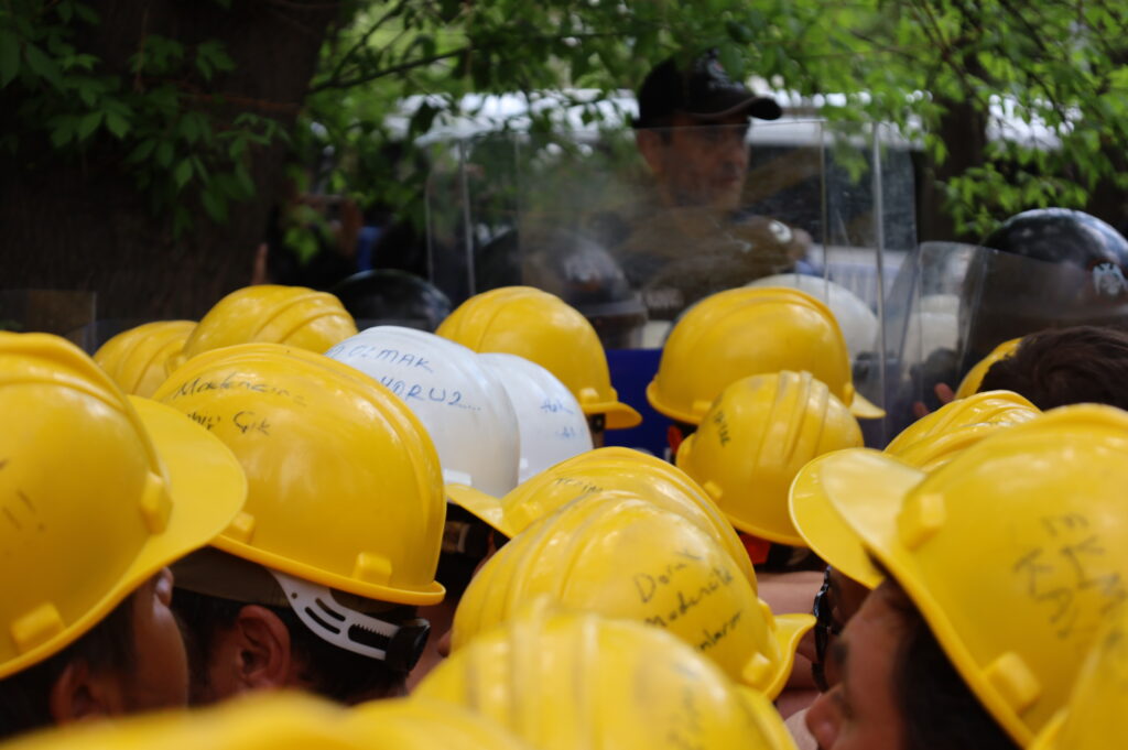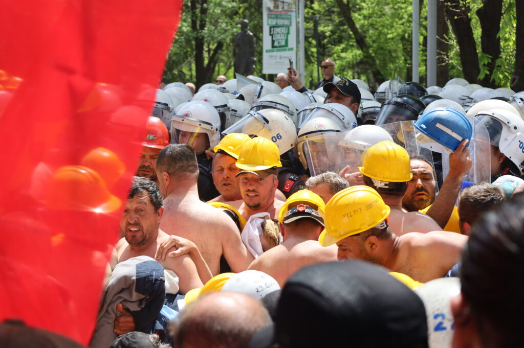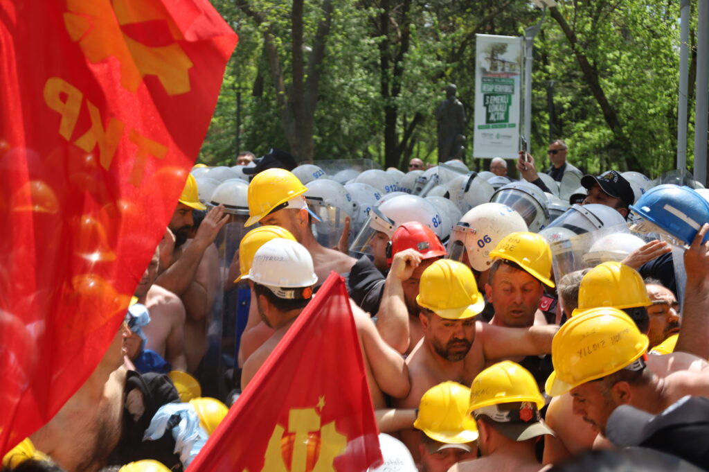 Piştî karkeran dorpeç hilweşandin û belavî parke bûn polîsan bi xaza îsotê êrişî karker û girseyê kirin. Polîsên ku bi tund êrişî girseyê kirine, nehiştin ku rojnameger jî kêşanê bikin. Polîsan bi êrişê, girseya ji bo piştevaniyê hatiye kir û ji hundirê parqê derxistin. Bi ser vê yekê karker di parqê de tenê man. Polîsan Pisporê Rêxistinkirinê yê Sendîkaya Maden-Îş a Serbixwe Başaran Aksu Başaran Aksu û Serokê Sendîkaya Madenê ya Xweser Gokay Çakir hatin binçavkirin.