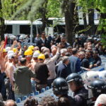 Piştî demekê karkeran tevî astengiyê jî xwestin bimeşin ber wezaretê. Li ser vê yekê polîsan karker dorpêç kirin û destûr nedan karkeran. Karkeran di hundirê dorpeçê de û girseya hatibû piştevaniyê jî li pişt barîkatan mane, barîkat û dorpêça polîsan hilweşandin. Demekê dirêj di navbera karker, girsê û polîsan de gengaşê çêbû. Piştî demekê karkeran careke din xwest bimeşin û barîkatên polîsan hilweşandin û belavî nava parkê bûn.