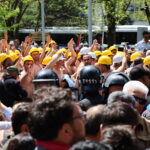Piştî polîsan girsê û karker ji hev cuda kirin, karker careke din dorpeç kirin û nehiştin girsê bikeve nava parqê. Karkerên madenê jî di bin dorpeçê de bi berzkirina dirûşmeyan çalakiya xwe didomînin. Her wiha girseya dixwazê serdana çalakiya karkeran bike ji aliyê polîsan ve tên astengkirin. Girseya ji bo piştgiriyê hatiye li derveyî parqê bi berzkirina dirûşmeyan bertek nişan astengkirina piştgirê didin.