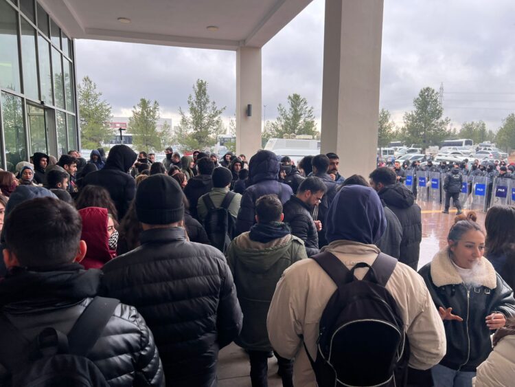Xwendekar bi saetan di dorpêça polîsan de man û bi dirûşm, tîlîlî û stranan nerazîbûn nîşanî astengiya polîsan dan û dilsoziya xwe ya bi Rojava re anîn ziman. Xwendekarên ku bi saetan di dorpêça polîsan de man, kêliyek dengê dirûşm û stranên wan nesekinî û berz bû û olan da. Xwendekaran paşê daxuyanî da çapemeniyê.
