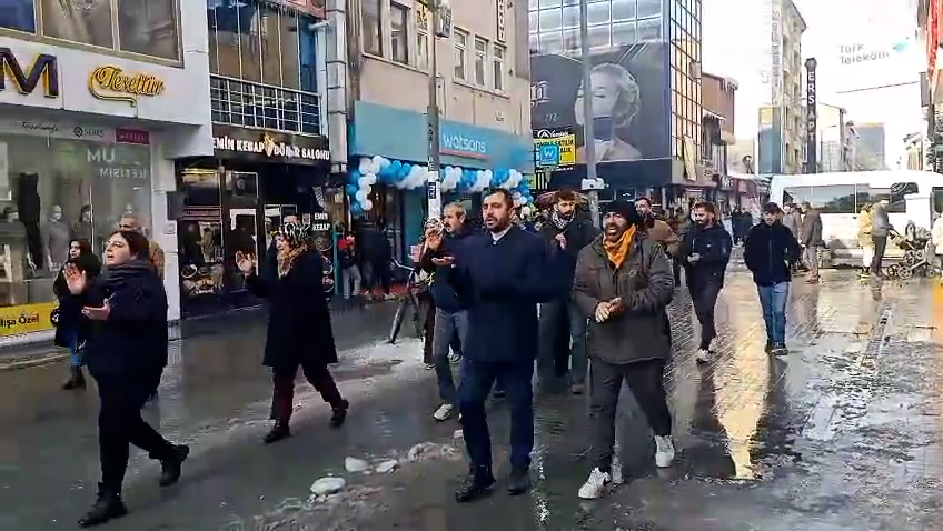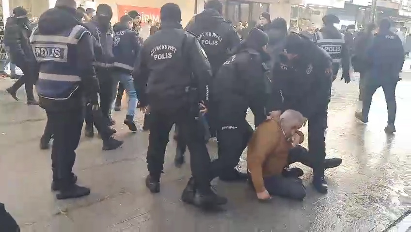 Xelkê jî bertek nîşanî êrişa polîsan da û bi berzkirina dirûşman heta ber avahiya DEM Partiyê meşiya.