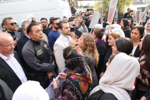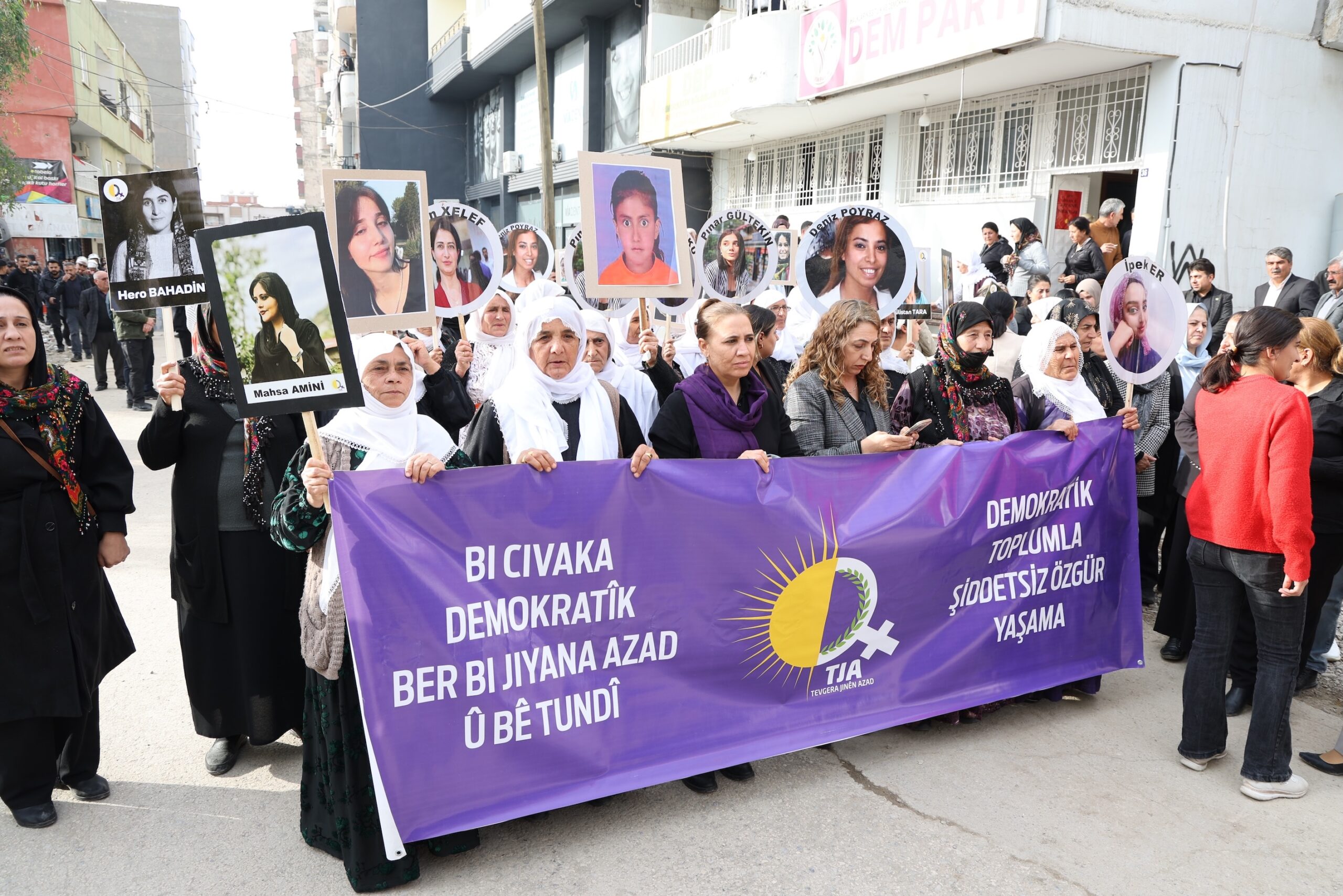 Li navçeya Silopiya ya Şirnexê bi boneya 25ê Mijdarê Roja Tekoşîna Li Dijî Tundiya Li Ser Jinan a Nawneteweyî li gel Parlementera DEM Partiyê ya Mêrdînê Salîha Aydenîz, endam û rêveberên partiyên siyasî, aktîvîstên Tevgera Jinên Azad (TJA) bi sedan jinên li ber avahiya DEM Partiyê kom bûyîn bi bankarta, ‘Bi civaka azad, ber bi jiyana azad û bê tundî’ xwestin heya kolana hunerê bimeşin.