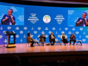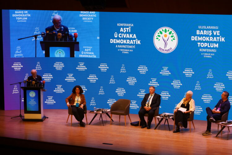 Konferansa Navneteweyî ya Aştî û Civaka Demokratîk a DEM Partiyê li Navenda Çandê ya Cem Karaca ya Stenbolê di roja duyemîn de berdewam dike.