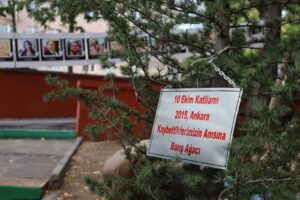 Pêkhateyên Demokrasiyê yên Ayranciyê ya Enqereyê, ji bo 10emîn salvegera komkujiya 10ê Cotmehê ya Gara Enqereyê li parqa Îkîzler a navçeya Çankayayê bernameya bîranînê li dar xist. Şahidên komkujiyê, xaziyên komkujiyê, Komeleya Aştî ya 10ê Cotmehê, rêxistina Partiya Wekhevî û Demokrasiyê ya Gelan (DEM Partî) a Enqereyê, Tevgera Jinên Azad (TJA), endam û nûnerên saziyên civakî û gelek kes tevlî daxuyaniyê bûn. Li parqa ku bernameya bîranînê hat lidarxistin bi wêneyê kesên di komkujiyê de jiyana xwe ji dest dane hat xemilandin. Her wiha ji bo qûrbaniyên komkujiyê li parqê dar hat çandin. Bernameya bîranînê ji bo cangoriyên aştî, azadî û demokrasiyê bi deqîqeyeke rêzgirtinê destpê kir.