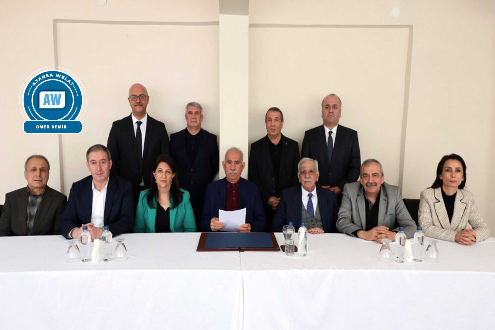 Di 27ê Sibata 2025an de şandeya Dem Partiyê ya ku ji Ahmet Turk, Pervîn Bûldan, Sirri Sureyya Onder, Tulay Hatimogulları, Tuncer Bakirhan, Cengiz Çiçek û Faik Ozgur Erol pêk dihat çû Îmraliyê û bi Rêberê Gelê Kurd Abdullah Ocalan re hevdîtin kir. Piştî hevdîtinê Şandeya DEM Partiyê, banga Aştî û Civaka Demokratîk ya Rêberê Gelê Kurd Abdullah Ocalan ji raya giştî re aşkere kirin. Rêberê Gelê Kurd Abdullah Ocalan di bangê de xwest ku PKK xwe fesix bike û dawî li şerê çekdarî bîne.