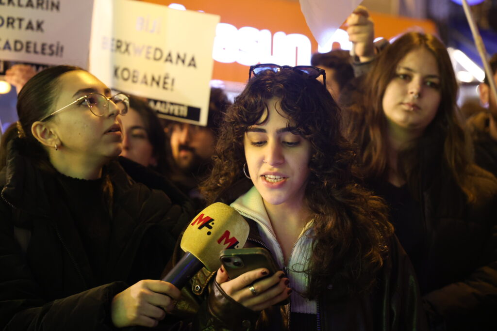 Endama DGBê Merve Yeşîlalan diyar kir ku ew ji bo piştgiriya gelê Kurd kom bûne û wiha got: “Çalakiyan me rastî êrişên polîsan tên. Ji bo em destkeftiyên Rojava biparêzin divê em di nava berxwedanê de bin. Yê ku dîroka wan bi kuştinan tije ne bila bizanê ku tu hêz nikarê me bide sekinandin. Dê ciwan hesaba kuştinan ciwanan bipirse.”