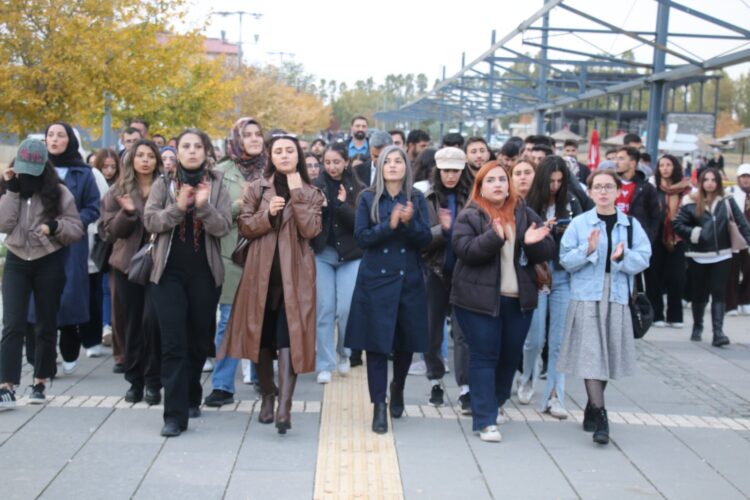 Piştî daxuyaniyê, girse ber bi pêşiya Fakulteya Perwerdehiyê ve meşiya û dirûşmeyên weke “Jin jiyana azadî”, “Berxwedan ji bo Rojîn berxwedan”, “Zilam dikujin, dewlet diparêze” û “Rektor îstifa bike” berz kirin. Piştî meşa ciwanan çalakî bi dawî bû.