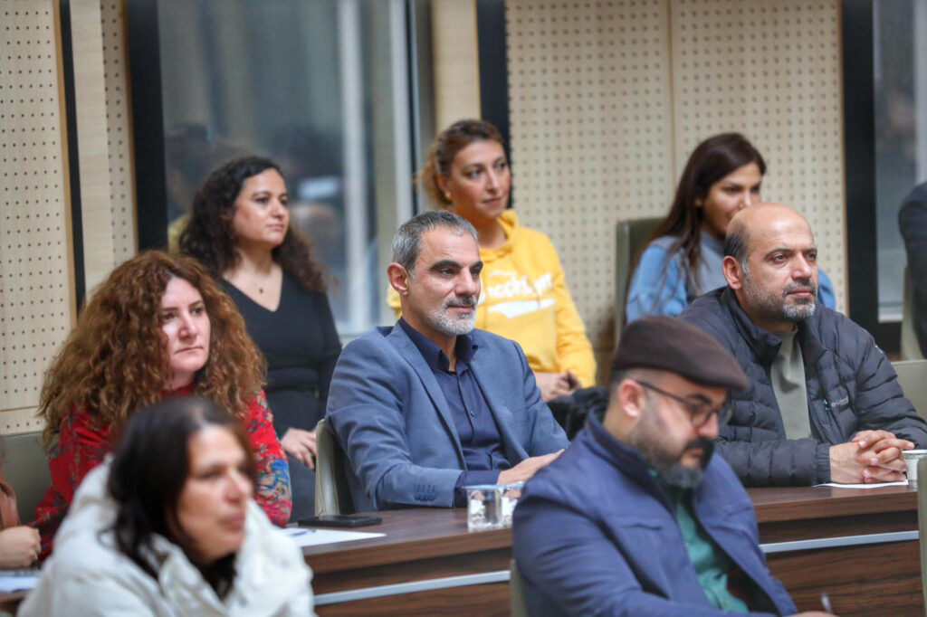 Zimanzan û ferhengsaz Zana Farqînî bi taybetî li ser mijara “Xizmetên gelemperî yên bi zimanê Kurdî û şaredariyên pirzimanî” sekinî û di vî warî de bal kişand ser erk û berpirsiyariya xebatkarên şaredariyê.