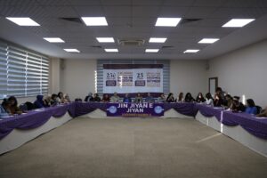 Piştî axaftinan civîn bi dirûşmeya “Jin jiyan azadî” bi dawî bû.
