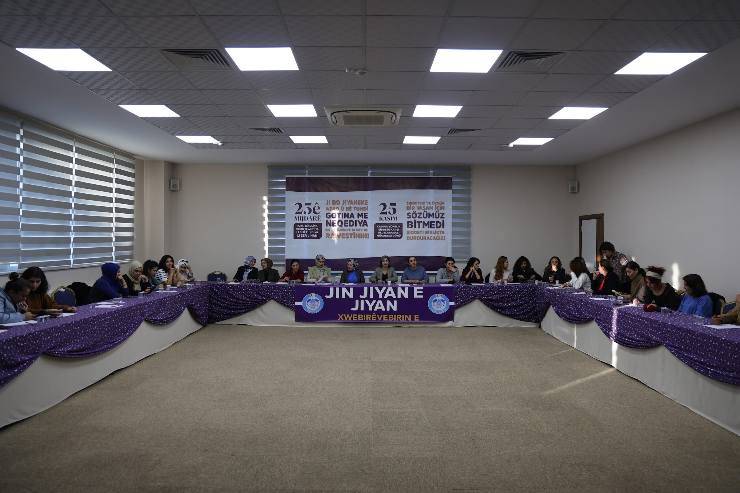 Di çarçoveya xebatên 25ê Mijdarê Roja Têkoşîna Li Dijî Tundiya Li Ser Jinan de bi pêşentiya Şaredariya Ebexê ya Wanê civînek agahdarî û nirxandinê ji bo pêşxistina navendên hevgirtina jinan hat lidarxistin. Civîna ku li Eywana Perwerdehiyê ya Parêzer Cûmhûr Keskîn ya Baroya Wanê hat lidarxistin, bi dirûşmeya “Ji bo jiyaneke azad û bê tundî gotina me neqediya! Em ê tundiyê bi hev re rawestînin” hat lidarxistin. Di eywana ku civîn lê hat kirin de pankarata “Jin jiyan e, jiyan xwebirêvebirin e” hat daliqandin. Hevşaredara Bajarê Mezin a Wanê Neslîhan Şedal, hevşaredarên navçeyên Wanê, nûnerên rêxistinên jinan ên li bajêr û nûnerên jin ên rêxistinên demokratîk beşdarî civînê bûn.