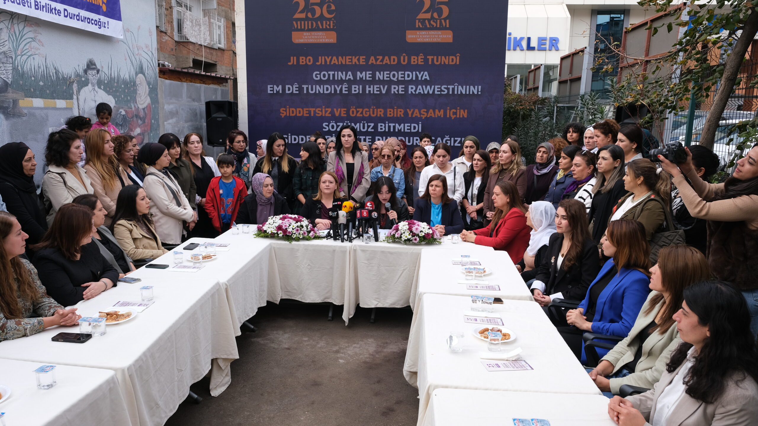 Şaredariya Bajarê Mezin a Amedê û şaredariyên navçeyan ên DEM Partiyî têkildarî 25ê Mijdarê Roja Têkoşîna li dijî Tundiya li ser Jinan a Navnetewî bi dirûşma “Ji bo jiyaneke azad û bêtundî gotina me neqediya ye, em ê tundiyê bi hev re rawestînin” li Navenda Hevgirtinê ya Rojîn Kabaîşê ya li navçeya Rezanê starta çalakiyên xwe dan. Nûnerên saziyên sivîl, partiyên siyasî û hevşaredar di nav de gelek jin tev li daxuyaniyê bûn. Di daxuyaniyê de pankarta li ser “Ji bo jiyaneke azad û bêtundî gotina me neqediya ye, em ê tundiyê bi hev re rawestînin” dinivîsî hate daliqandin. Metna Kurdî Midûra Polîtîkayên Jinan a Peyasê Fatma Bûdak Gul û metna Tirkî jî Dêrûnnasa Midûriyeta Polîtîkayên Jinan a Şaredariya Rezanê Rozerîn Dogar xwend. Di daxuyaniyê de dirûşma “Jin jiyan azadî” hate berzkirin.
