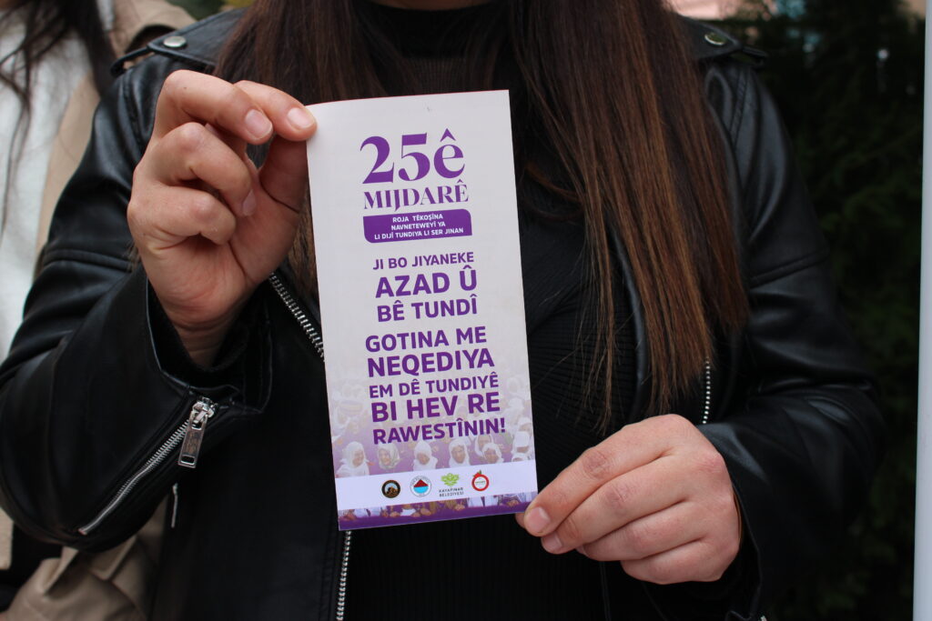 Û em careke din radigihînin: Soza me ji bo jiyaneke bê tundî û azad bi dawî nebûye; em ê bi hev re tundiyê rawestînin! Jin, jiyan, azadî!”