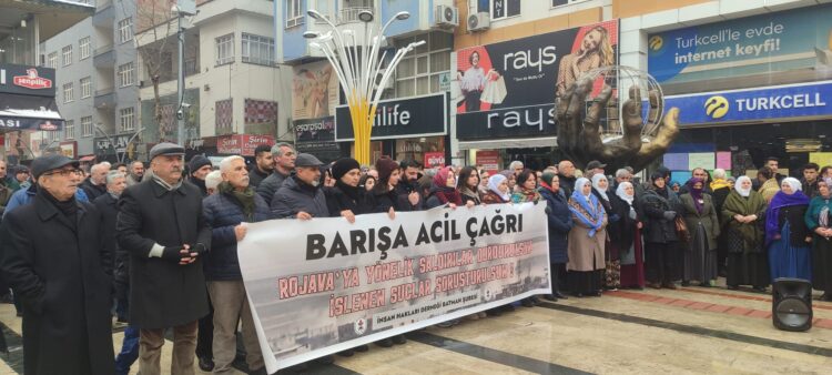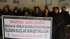 Şaxa ÎHDê ya Îzmîrê têkidlarî êrişên li ser Rojava daxuyanî da û şermezar kir. Daxuyanî li ber Sumerbanka kevn a li navçeya Konakê hate dayîn. Rêveberên ÎHDê û nûner û rêveberên saziyên demokratîk tev i daxuyaniyê bûn. Hevseroka Şaxa Îzmîrê ya ÎHDê Zîlan Gumuş daxuyanî xwend.