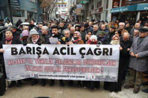 Şaxên Komeleya Mafên Mirovan (ÎHD) li dijî êrişên li ser Rojavayê Kurdistanê daxuyanî dan û êrişan mafên mirovan binpê dikin şermezar kirin û gotin: “ Em raya giştî ya Tirkiyeyê û cihanê vedixwînin ku deng bidin aştiyê û xwedî li mirovahiyê derkevin.”