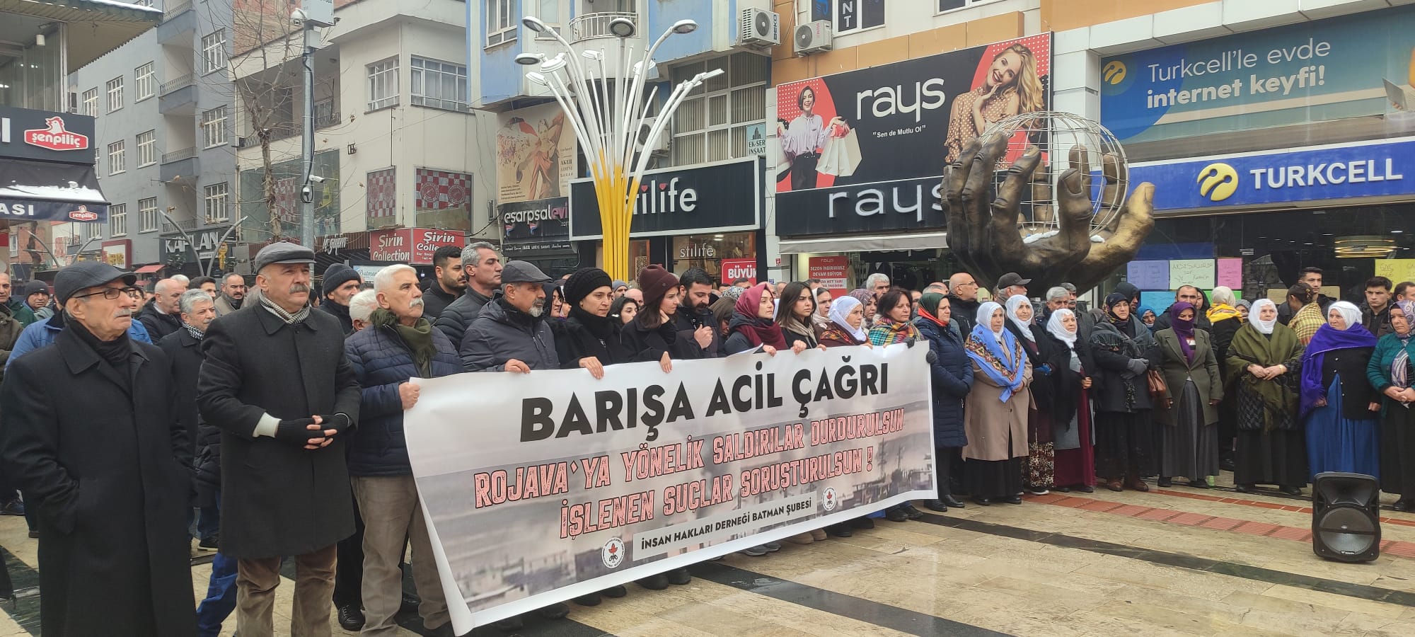 Em bang li hemû dewletên endamên Neteweyên Yekbûyî û saziyên navneteweyî, bi taybetî li Tirkiyê dikin; divê li dijî komkujî û qirkirina li Sûriyê bêdeng nemînin, êrîşên li dijî Kurdan demildest bên rawestandin û rêz li mafê biryardayîna paşeroja xwe ya gelên niştecih ên wekî Kurd, Suryanî, Elewî, Durzî û hemû civakên din bê girtin û ev mafê meşrû bi awayekî xurt bê piştgirîkirin. Divê rêveberiyeke demokratîk li Sûriyeyê bê avakirin, dê bibe wesîleyê hem aştiya navxweyî ya Tirkiyê û hem jî aştiya herêmî. Di vê çarçoveyê de Tirkiye divê dûr bisekine ji piştgirîkirina pêkhateyên ku li Sûriyê yekparêziyê dikin hedef û ji bilî xwe mafê jiyanê nadin tu kesî, û divê piştgiriyê bide polîtîkayên ku jiyana wekhev û azad a hemû gel û baweriyan. Em wekî rêxistinên civaka sivîl yên li Amedê ji bo avakirina jiyaneke hevpar a li ser esasê nirxên demokrasî û mafên mirovan, li ser bingehên wekhevî, azadî û aştiyê li cîhanê û erdnîgariya me, bang li herkesî dikin ku li dijî şer û şîdetê bikevin nava tevgerê û xwedî li rûmeta mirovahiyê derkevin.