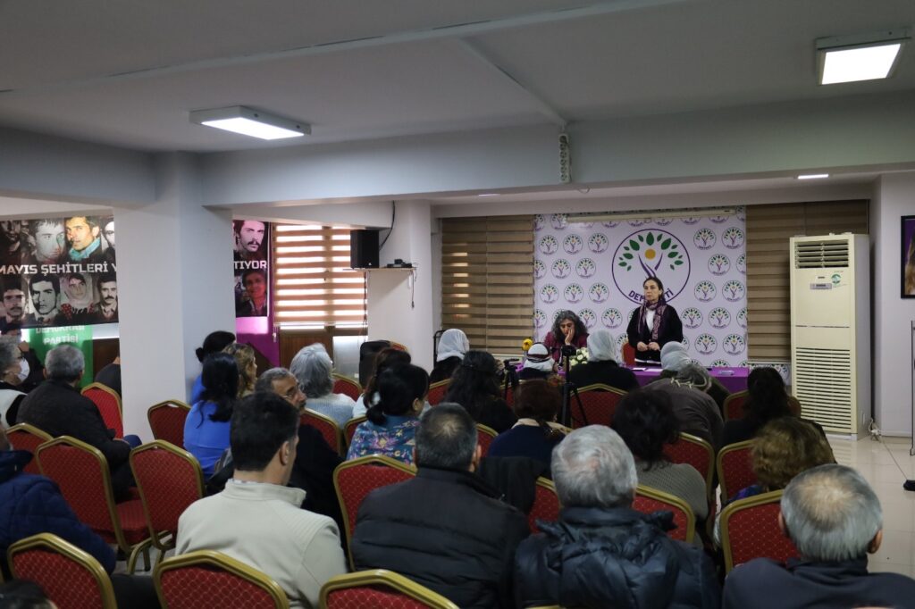 Rêxistina DEM Partiyê ya Îzmîrê bi beşdariya aktîvîsta Tevgera Jinên Azad (TJA) Sebahat Tûncelê li avahiya xwe gotûbêjek li dar xist. Endam û rêveberên DEM Partiyê di nav de gelek kes beşdarî gotubêjê bûn. Di gotûbêjê de bang li hemû aliyên aştîxwaz û demokrat hate kirin ku bi gelên Rojava re di nav piştevaniyê de bin û hate diyar kir ku Li Rojhilata Navîn kî birêxistinkirî be, ew ê bi serbikeve.