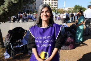 Riha – Meşa TJAyê di roja sêyemîn de berdewam dike. Hevşaredara Wanê Neslîhan Şedal a tev li meşê bûye destnîşan kir ku ji bo ku ev pêvajo bi awayekî bi rêk û pêk bi rê ve biçe pêdiviya herî mezin azadiya fizîkî ya Rêberê Gelê Kurd Abdullah Ocalan e.