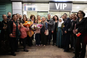 Semra Guzel di saetên şevê de hat Amedê û li balafirgeha Amedê ji aliyê Hevşaredarê Bajarê Mezin a Amedê Dogan Hatun, Parlamentera DEM Partî ya Amedê Ceylan Akça Cupolo, rêxistina DEM Partî û DBPê ya Amedê, malbata Guzel, Dayikên aştiyê, nûnerên SES, TJA, TUAY-DER û gelek kesan ve hat pêşwazîkirin. Girseyê di pêşwazîkirinê de dirûşmayên “Bijî berxwedana zindanan” û “Jin Jiyan Azadî” berz kirin.