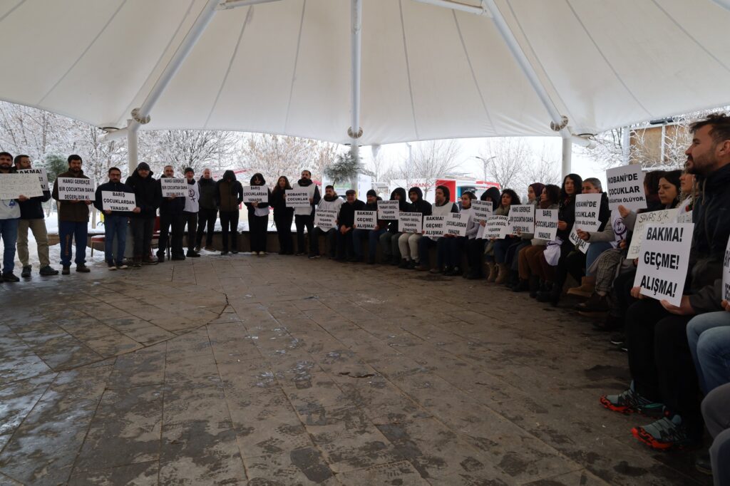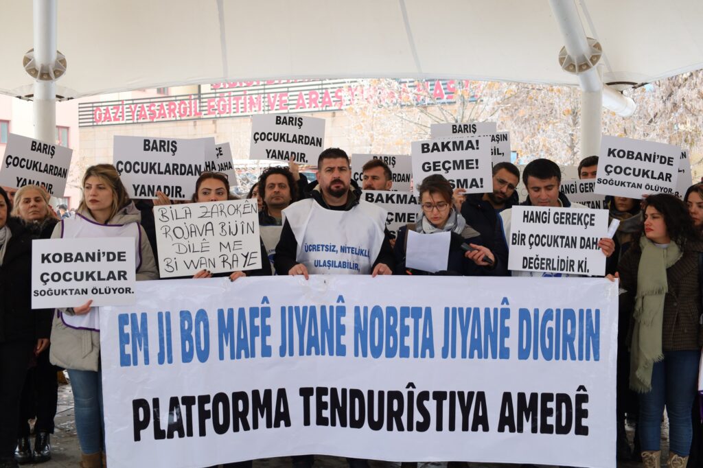 Platforma Tenduristiyê ya Amedê li pêşiya Nexweşxaneya Perwerde û Lêkolînê ya Gazî Yaşargîl Nobeta Mafê Jiyanê li dar xist û got: “Şer pirsgirêka tenduristî ye derman jî aştî ye.”