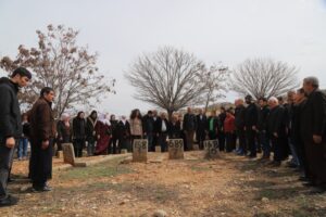 Endamên MEBYA-DERa Amedê, parlementera Partiya Wekhevî û Demokrasiya Gelan (DEM Partî) a Amedê Adalet Kaya, endamên partiyên siyasî, nûnerên saziyên sivîl ên civakî û malbat tev li serdana goristanê bûn. Malbata di nav gorên ku ji aliyê dewletê ve hatibûn tehrîbkirin geriyan û serdana gorên xizmên xwe kirin. Di serdanê de dua hatin kirin. Pişt re mele li ser goran Quran xwend.