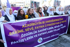 Dayîka Sêvê Demîr, Sakîne Demîr jî diyar kir ku ew bi keda cangoriyên xwe îro li ser pêyan e û got: “Zarokên me aştîxwaz bûn, wekhevî dixwestin û ji ber vê yekê hatin kuştin. Dema zarokên me şehîd ketin gotin bila xwîna me bi şeref birije ser vê axê. Em îro dibêjin aştî û bila dewlet jî li gorî vê yekê gavan biavêje. Em naxwazin tu kes bikeve navbera me û aştiyê pêk bîne. Bila destê rêzdar Ocalan bigirin û aştiyê pêk bînin. Ez bang li rayedarên dewleta Tirk dikim ku destê xwe dirêjî aştiyê bikin.”