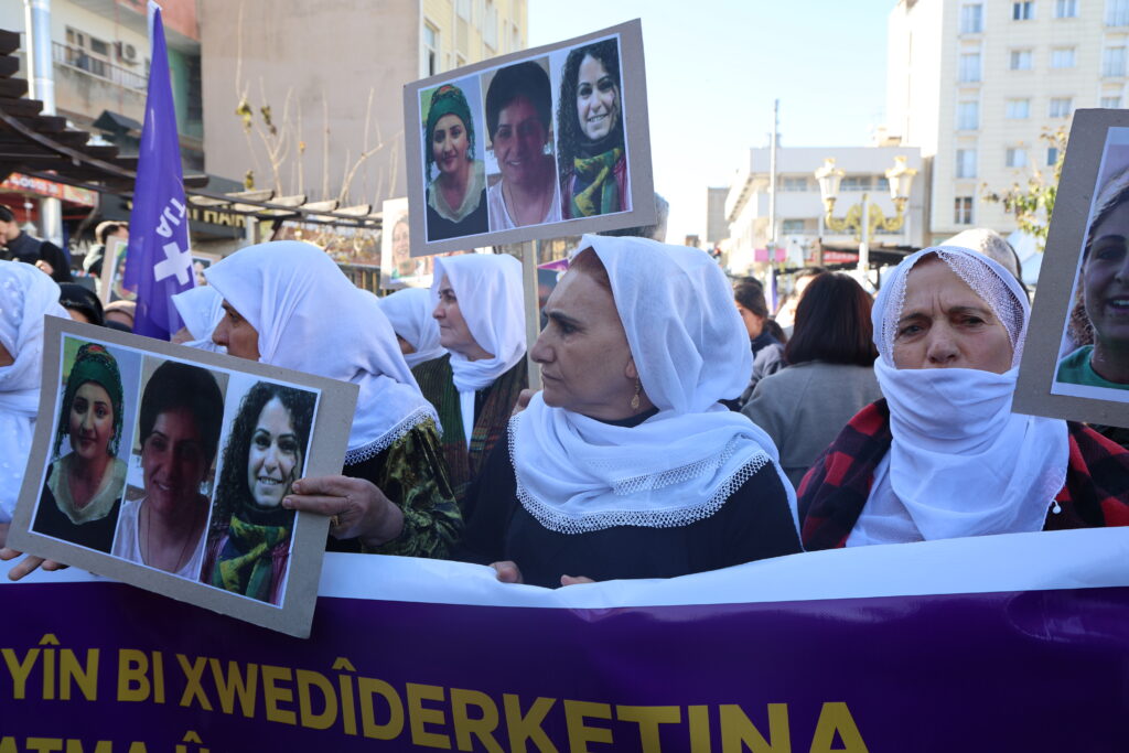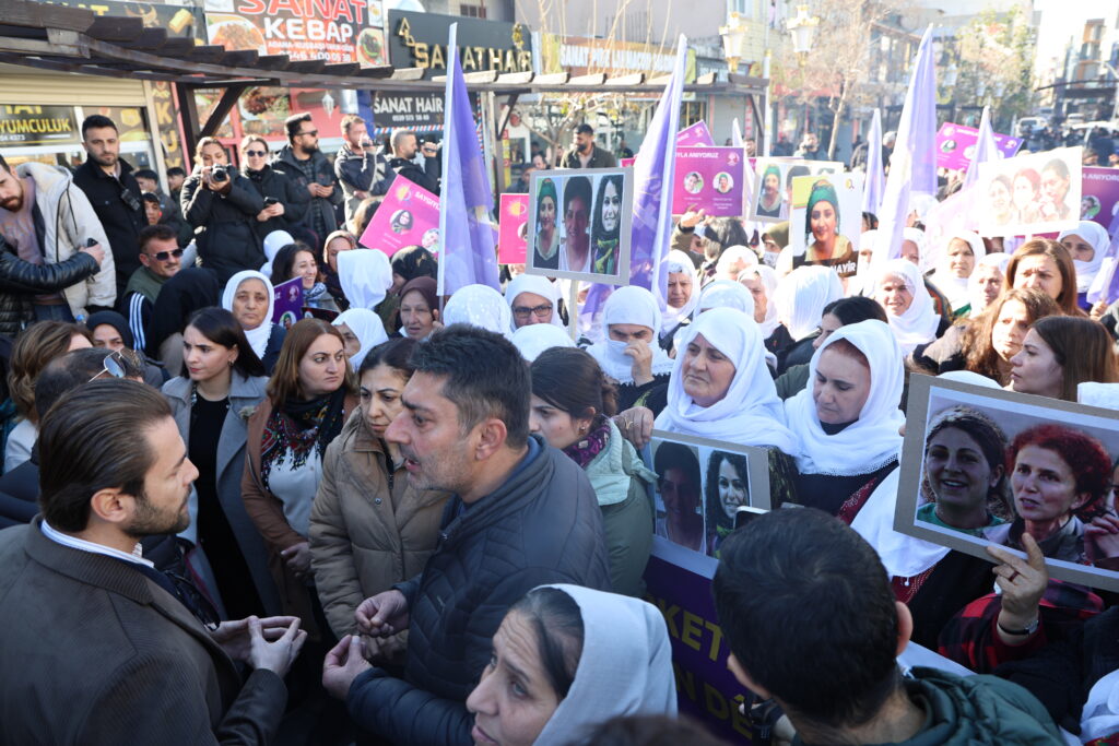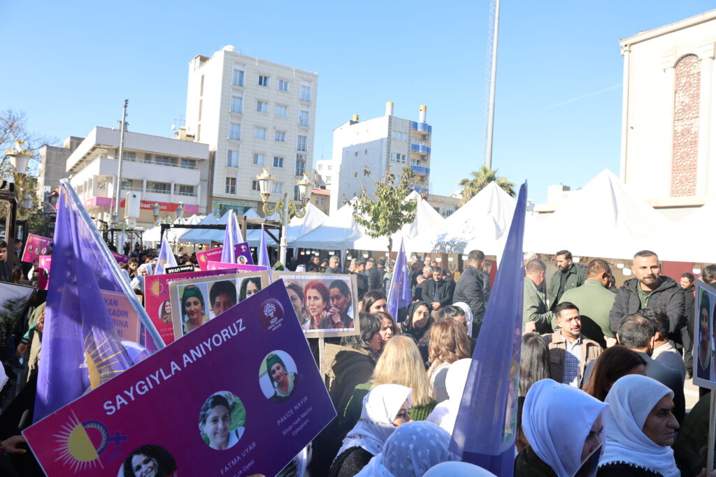 Endam û rêveberên saziyên MEBYA-DERê, Tevgera Jinên Azad, Dayikên Aştiyê, TUHAD-FEDê, rêveber û nûnerên partiyên DBPê û DEM Partiyê bi sedan kes tev li bîranîna li Kolana Hunerê kom bûn. Di bîranînê de pankarta, “Azadîbûyîn dê bi xwedîderketina Sakîne, Sêvê, Fatma û Pakîzeyan pêk bê” hat vekirin û wêneyên sê jinên li Parîsê hatibûn kuştin û wêneyên sê jinên li Silopiya hatibûn kuştin, hatin hilgirtin.