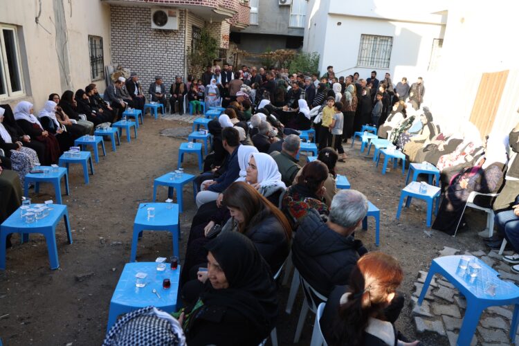 Piştî ku girse gihîşt cihê şînê ku li mala malbata Yasîn Garan e ji bo cangoriyên azadiyê deqeyek rêz girt. Piştî rêzgirtinê Hevserokê Giştî yê DEM Partiyê Keskîn Bayirdir got ew bi saya şehîdên vê dozê gihîtine merheleyek dîrokî û wiha axivî: “Em îro di merhelyek dîrokî re derbas dibin. Em ê vê gava dîrokî bi saya şehîdan bigihînin aştiyek birûmet. Em sersaxiyê ji malbat û hemû gelê kurd re dixwazin.”