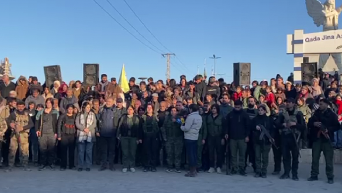 Yekîneyên Parastina Jinê (YPJ) û Hêzên Sûriyeya Demokratîk (HSD) li bajarê Kobanê li Qada Jin a Azad bi beşdariya gel daxuyaniyek dan. Endama Fermandariya Giştî ya YPJê Sozdar Dêrik daxuyanî da û got: “Ey gelê Kobanê yê welatparêz, em ji bo berxwedanê re amade ne.”