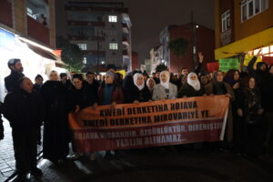 Paşê jî daxuyanî hat xwendin û daxuyanî bi dirûşmeya “Bijî berxwedana Rojava” bi dawî bû.