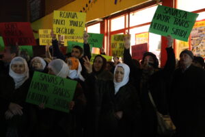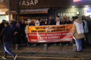 Paşê jî daxuyanî hat xwendin û daxuyanî bi dirûşmeya “Bijî berxwedana Rojava” bi dawî bû.