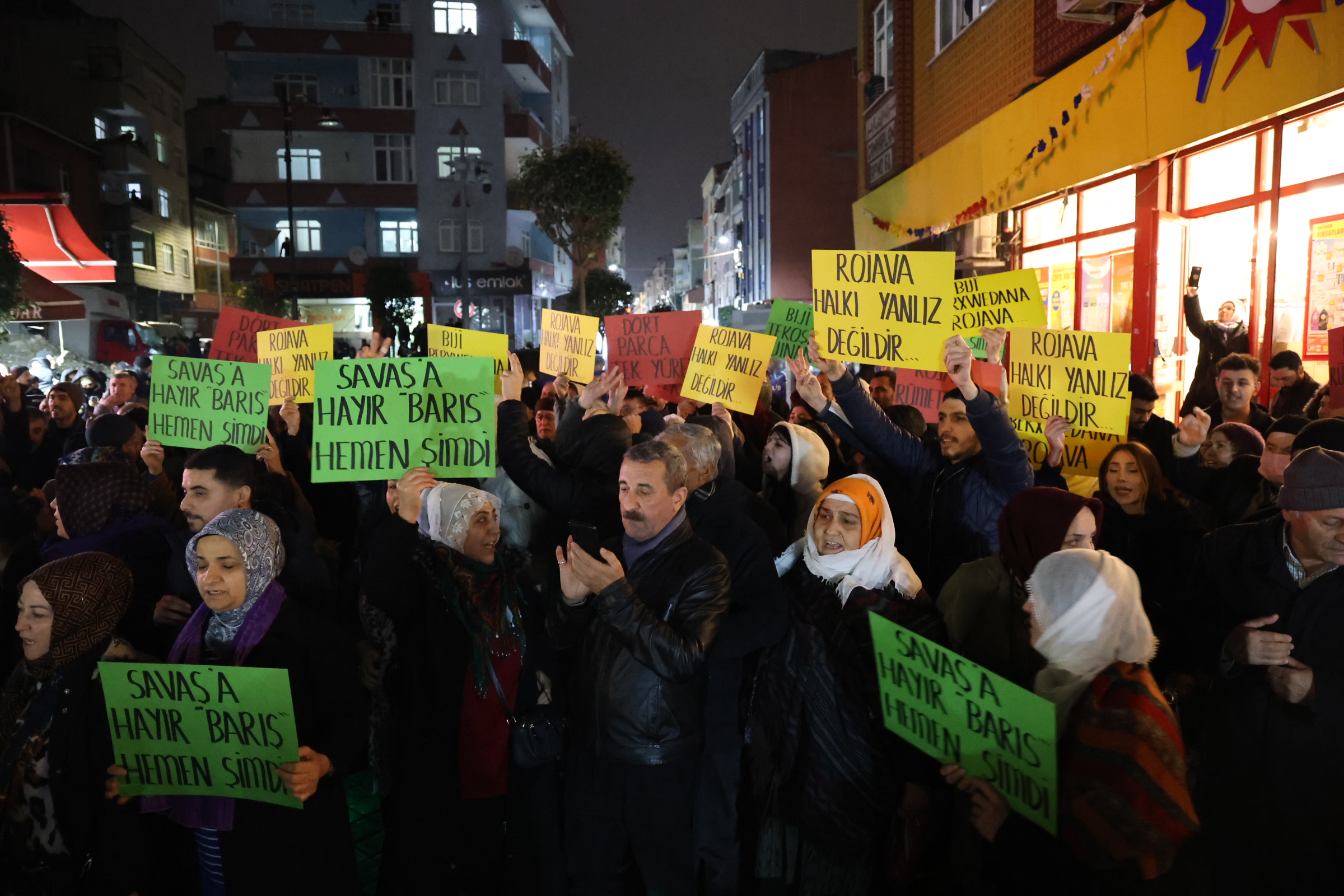 Li Stenbolê her roj gelê Kurd û Tirk li dijî êrîşên çeteyên HTŞ, SMO û DAIŞê yên li ser Rojava çalakiyan dikin û dengê bilind dikin. Rêxistina DEM Partiyê ya Stenbolê navçe navçe daxuyanî dide û meş li dar dixe. Li navçeyên Bagcilar, Pendîk û Kagithaneyê girse daket qadan.