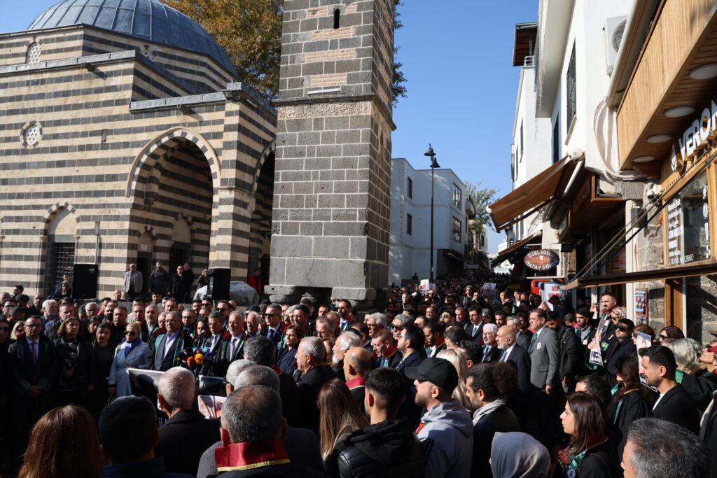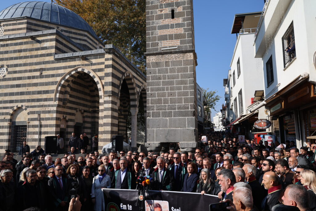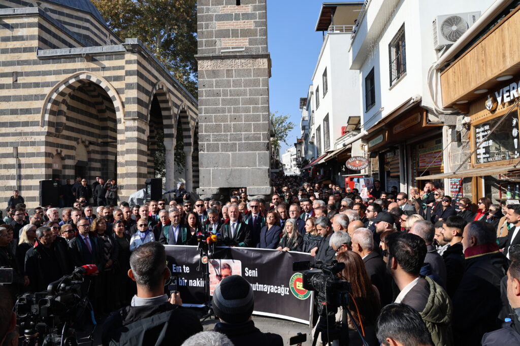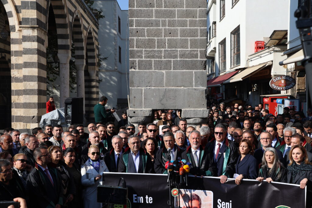 Serokê Baroya Amedê Abdulkadîr Guleç ewilî daxuyanî da û diyar kir ku 10 sal in ji bo aştiyê dimeşin û got: “Hûn li doza Tahir Elçî xwedî derketin. Tahir Elçî bi suîkasteke siyasî hate kuştin. Doza hate vekirin jî daxwaza edeletê dernexist holê. Tahir Elçî ne tenê hiqûqnasek bû, Tahir Elçî parêzerê mafên mirovan bû. Parêzerê kesên ku mafên wan dihat binpêkirin bû. Tahir Elçî ji bo aştî were înşakirin gelek ked da. Lê îro kuştina Tahîr Elçî hê jî nehatiye ronîkirin. Li ser vê axê şer nedixwest. Gotina Tahir Elçî ‘em şer naxwazin’ hê jî di guhên me de ye û olan dide. Kesên Tahîr Elçî hedef girt aştiyê jî hedef girt. Em li vir dîsa dibêjin, heta ku heqîqet dernexin holê aştî jî pêk nayê. Em wekî Baroya Amedê bang dikin ‘Divê berpirsiyarên kuştina Tahir Elçî werin dîtin’. Birêz Tahir Elçî keda te îro di nava hempêşiyên te de zindî ye û em xwedî li keda te derdikevin. Em biryarin, heta ku aştiyê bînin vî welatî em ê têbikoşin.”