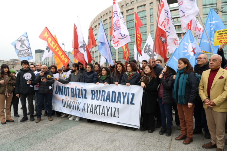 Di 3ê Sibatê de li dijî Partiya Sosyalîst a Bindestan (ESP), Meclisên Jinên Sosyalîst (SKM), Federasyona Komeleyên Ciwanên Sosyalîst (SGDF), DÎSK/LÎMÎTER-ÎŞ, Polen Ekolojî û BEKSAVê operasyonekê siyasî pêk hat. Polisan 22 bajaran bi ser gelek malan de girt Hevserokê Giştî yê Partiya Sosyalîst a Bindestan (ESP) Murat Çepnî, nûçegihanên Ajansa Nûçeyan a Etkînê (ETHA), endamên Meclisên Jinên Sosyalîst (SKM), Federasyona Komeleyên Ciwanên Sosyalîst (SGDF), DÎSK/LÎMÎTER-ÎŞ, Polen Ekolojî û BEKSAVê jî di nav de 95 kes binçavkiribûn. 55 kesên binçavkirî îro sewqî Edliyeya Stenbolê hatibûn kirin. Li ser vê yekê ESPê îro bang kir û her kes vexwend ber deriyê Edliyeya Stenbolê. Parlamenterên DEM Partiyê, endam û rêveberên partiyên siyasî û saziyên sivîl ên civakî di nav de gelek kes li ber edliyeyê kom bûn û li vir daxuyanî dan. Di daxuyaniyê de pankarta “Hevî em in, li vir in, li ser pêyan e” hat vekirin û dirûşmeya “Bijî piştgiriya şoreşgerî” hat berzkirin.